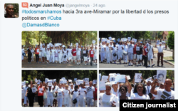 Los reporteros Juan G. Febles, Lázaro Yuri Valle, Agustín López y Serafín Morán, y la Dama de Blanco Eralides Frómeta fueron detenidos este domingo cuando se dirigían al parque Gandhi en Miramar, Ciudad Habana, donde habitualmente decenas de activistas de Derechos Humanos se dan cita para desarrollar la campaña #TodosMarchamos.